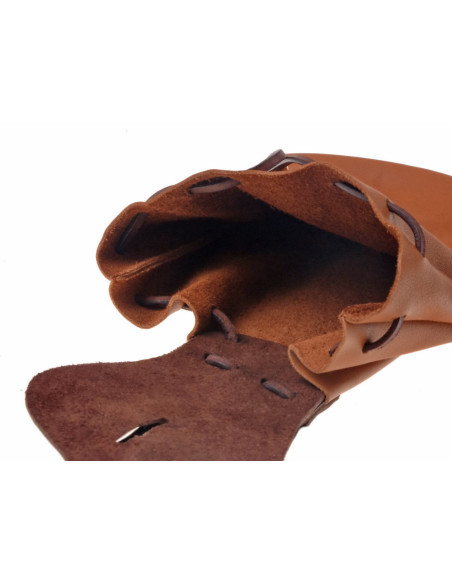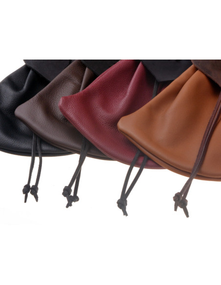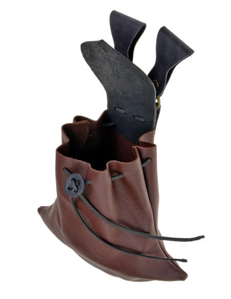 Its trapezoidal silhouette, true to High Medieval models, creates a compact line that enhances the aesthetic of the historical outfit without bulking up or hindering mobility. The soft cowhide leather adapts to movement, offering a pleasant touch and a smooth opening for quick access to essentials.