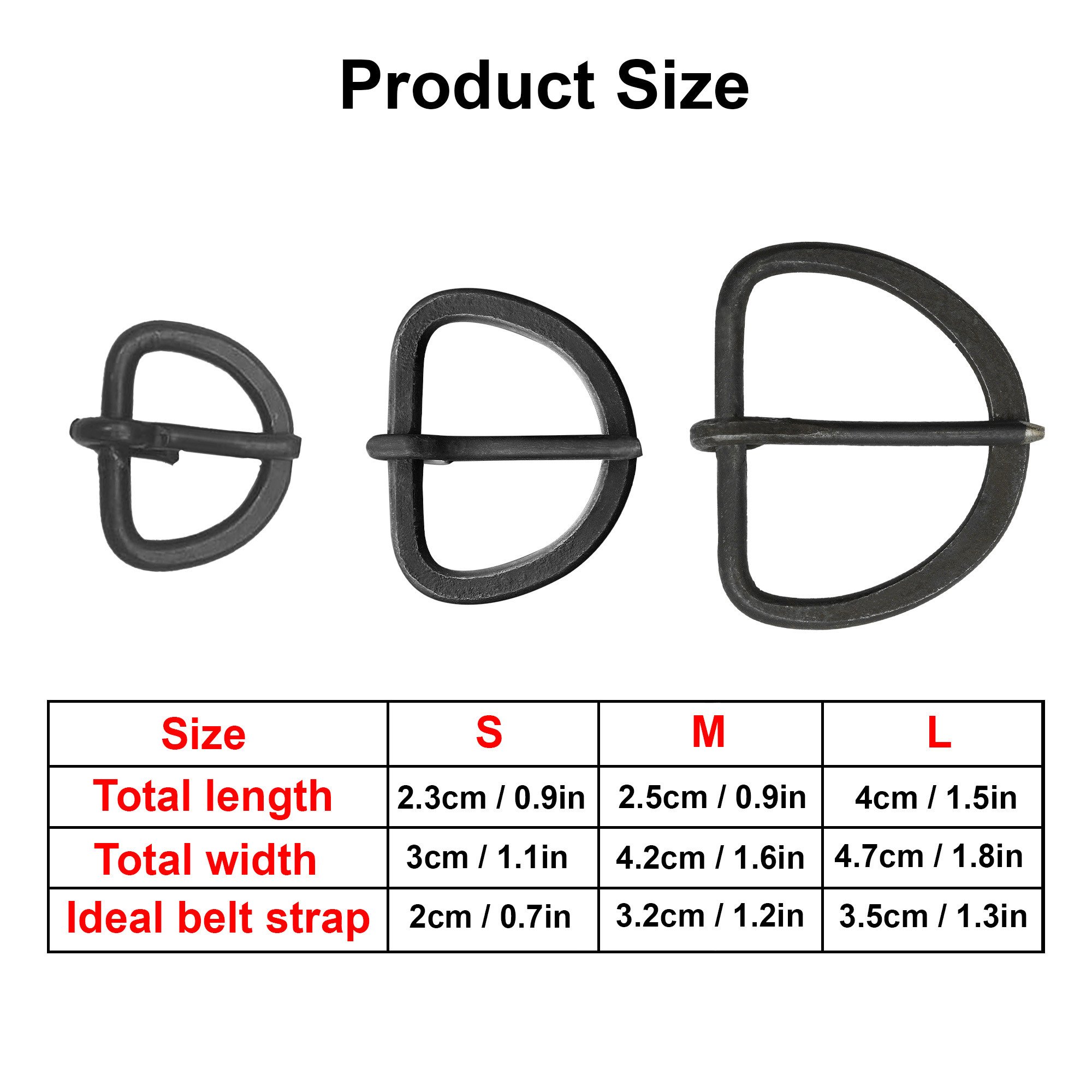 Set of 3 medieval buckles in antique brass fantasy design, various sizes
