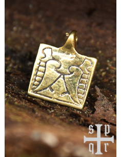 Inspired by an archaeological find from Birka, an ancient Viking settlement in Sweden, this hardware reflects the elegance of Nordic motifs that adorned accessories between the 8th and 11th centuries. Its intricate design, engraved in high-quality brass, stands out for its durability and the beauty of its ornamental pattern.