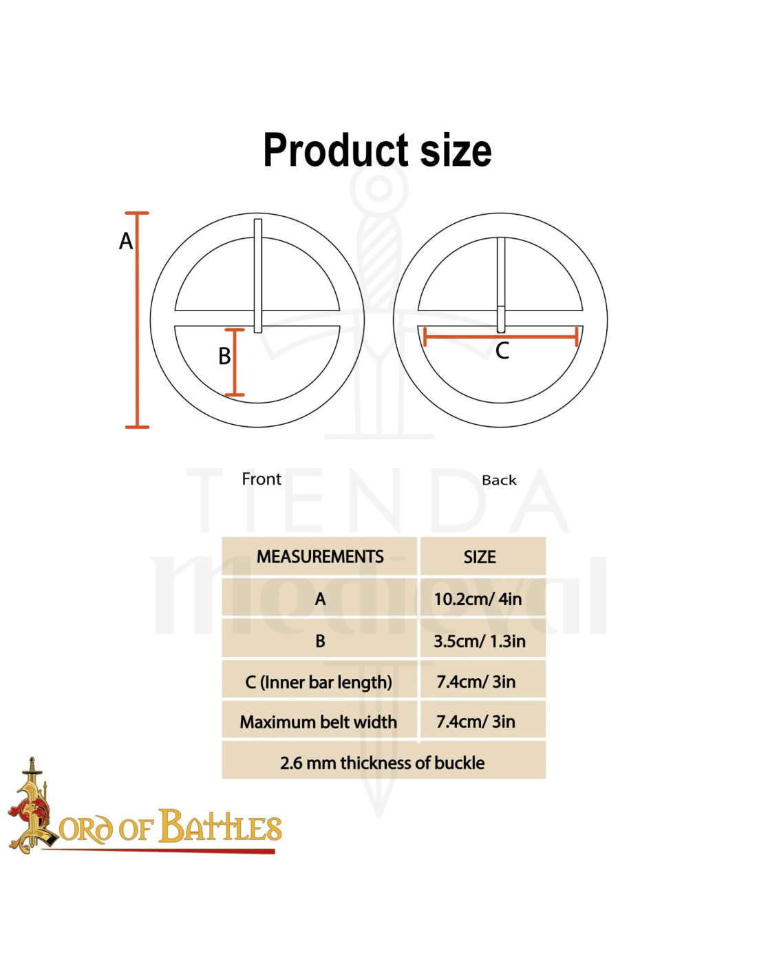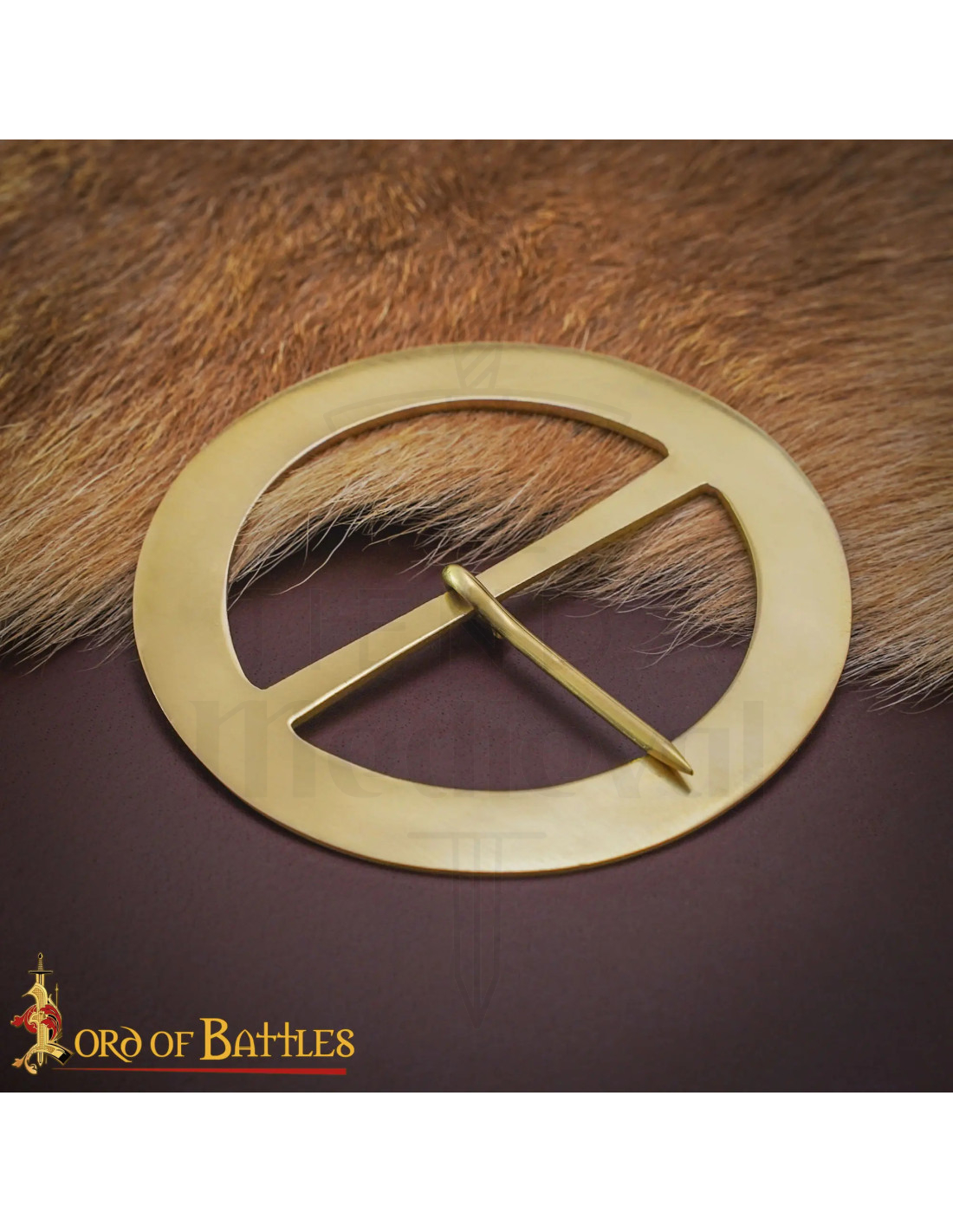 The product image shows the buckle on dark leather with a light leather background, a setting that suggests tradition and craftsmanship, and helps you envision it integrated into authentic outfits. If you are looking to buy the Round Medieval Buckle in Brass (9.5 cm), here is an option that combines history, aesthetics, and practicality in a single piece.