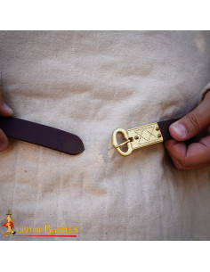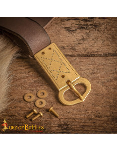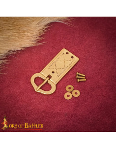 It includes rivets and washers that facilitate secure assembly and adherence to historical techniques, so you won’t have to improvise to integrate it into your leather. The visible metal pin in the piece allows for easy and reliable adjustment, ideal for those looking for costume pieces that function as well as they look.
