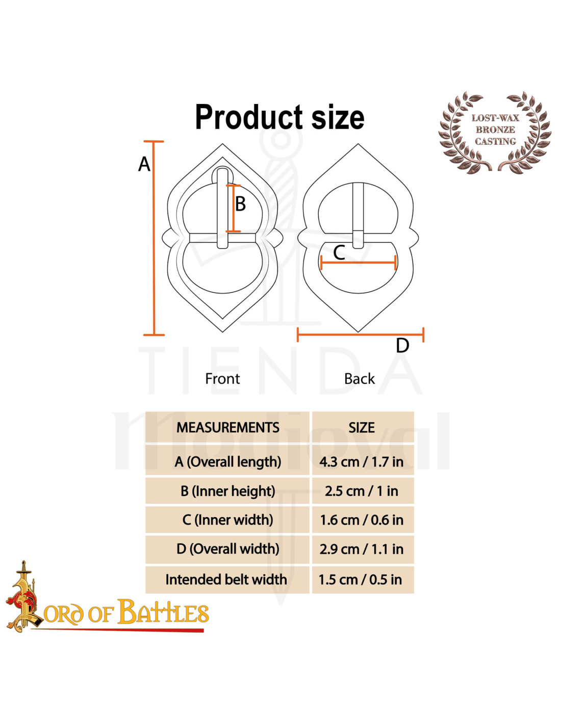 If you are looking for where to buy a Medieval Belt Buckle in Polished Bronze, this piece combines authenticity and practicality in a format designed for those who value detail. It is perfect for completing a Renaissance outfit, adding character to reenactment attire, or giving a historical twist to your everyday wardrobe.