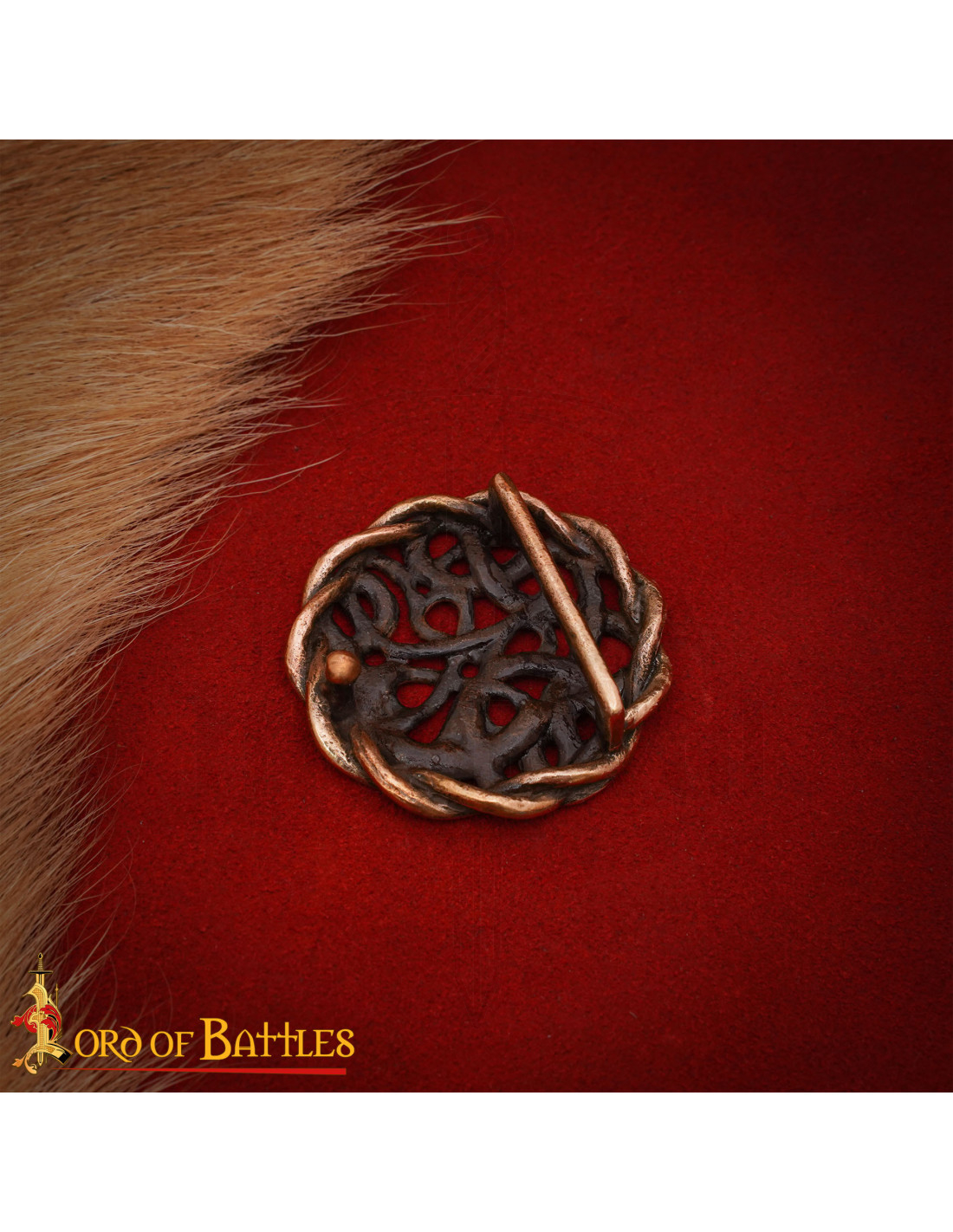 The interlaced pattern, with ribbon-style loops and visible negative spaces, not only adds elegance but also reduces the visual weight, making your belt look more streamlined and comfortable for everyday wear or historical reenactments. The circular structure with integrated tongue and fastening bar ensures a secure fit, ideal for securing garments, bags, or accessories with an authentic appearance.