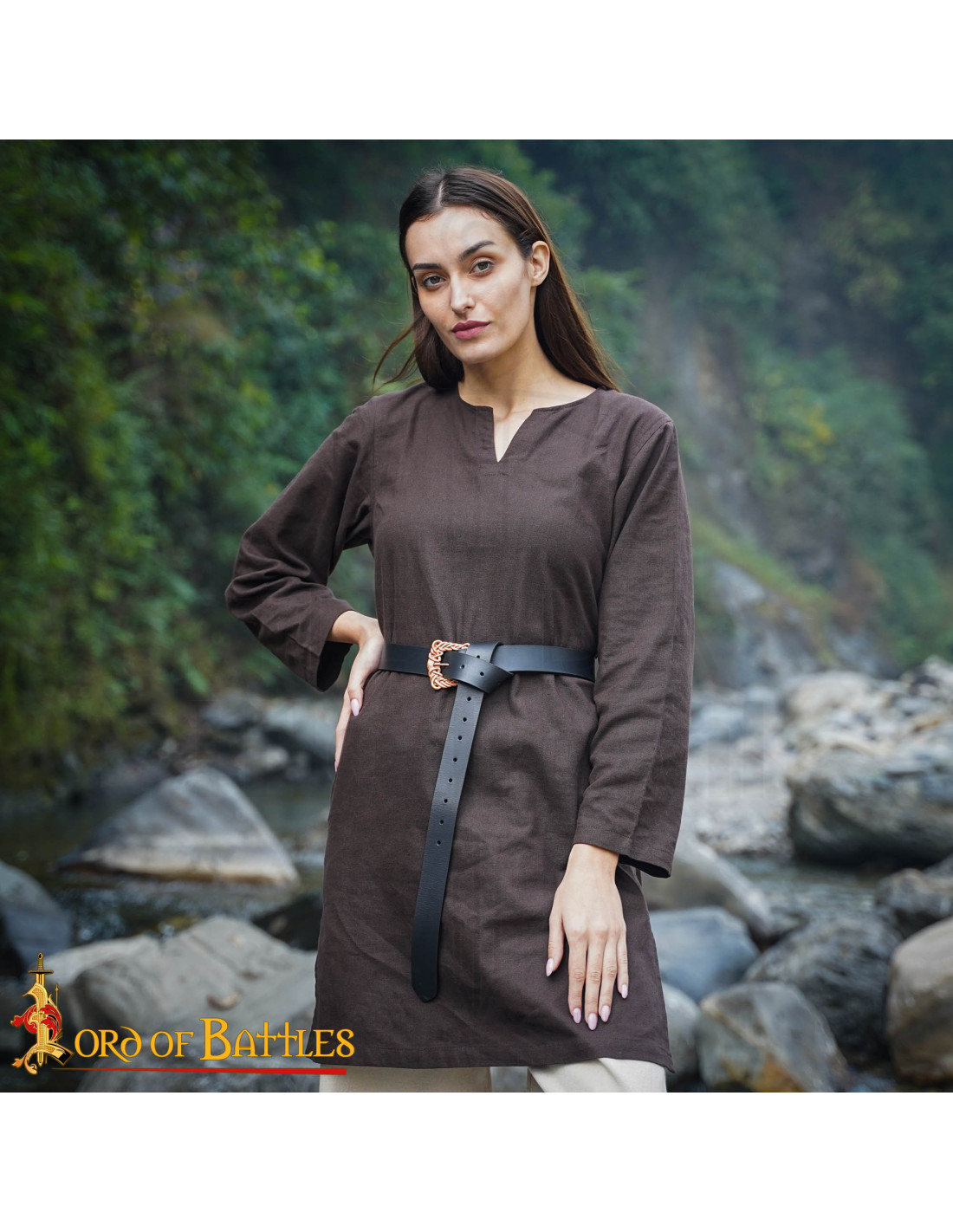 Designed based on models excavated from Viking trading hubs like Birka, Hedeby, and Jorvik, it evokes the geometric language characteristic of the 9th and 10th centuries, providing historical credibility to any ensemble. Its sober and well-proportioned aesthetic makes it suitable for both reenactments and contemporary Nordic-inspired garments.