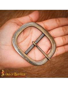 The rough, matte appearance, with textures mimicking historical wear, adds visual authenticity, achieving a balance between elegance and medieval strength that works for costumes, leather craft items, and LARP outfits. If you're looking to buy an Antique Brass Oval Medieval Buckle, here you have an option that combines traditional aesthetics with everyday use.