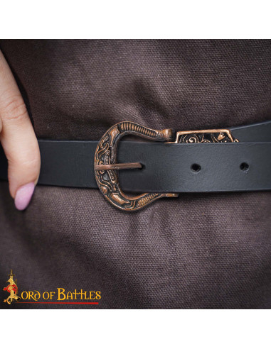 The reinforced central bar and custom-designed tongue ensure a secure latch, translating into safety during long days or dynamic activities. Its solid construction prevents unwanted movements, making it easy for your belt to maintain the shape and fit intended, both in period looks and modern combinations.