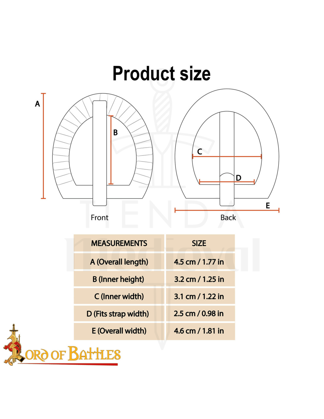 Choose this buckle if you want to combine traditional aesthetics with modern functionality. It easily adapts to narrow straps used in historical clothing, light armor, handcrafted bags, or LARP gear, providing a firm closure and confidence in its durability. Additionally, its natural finish facilitates integration with various leather tones, creating an elegant and authentic contrast.