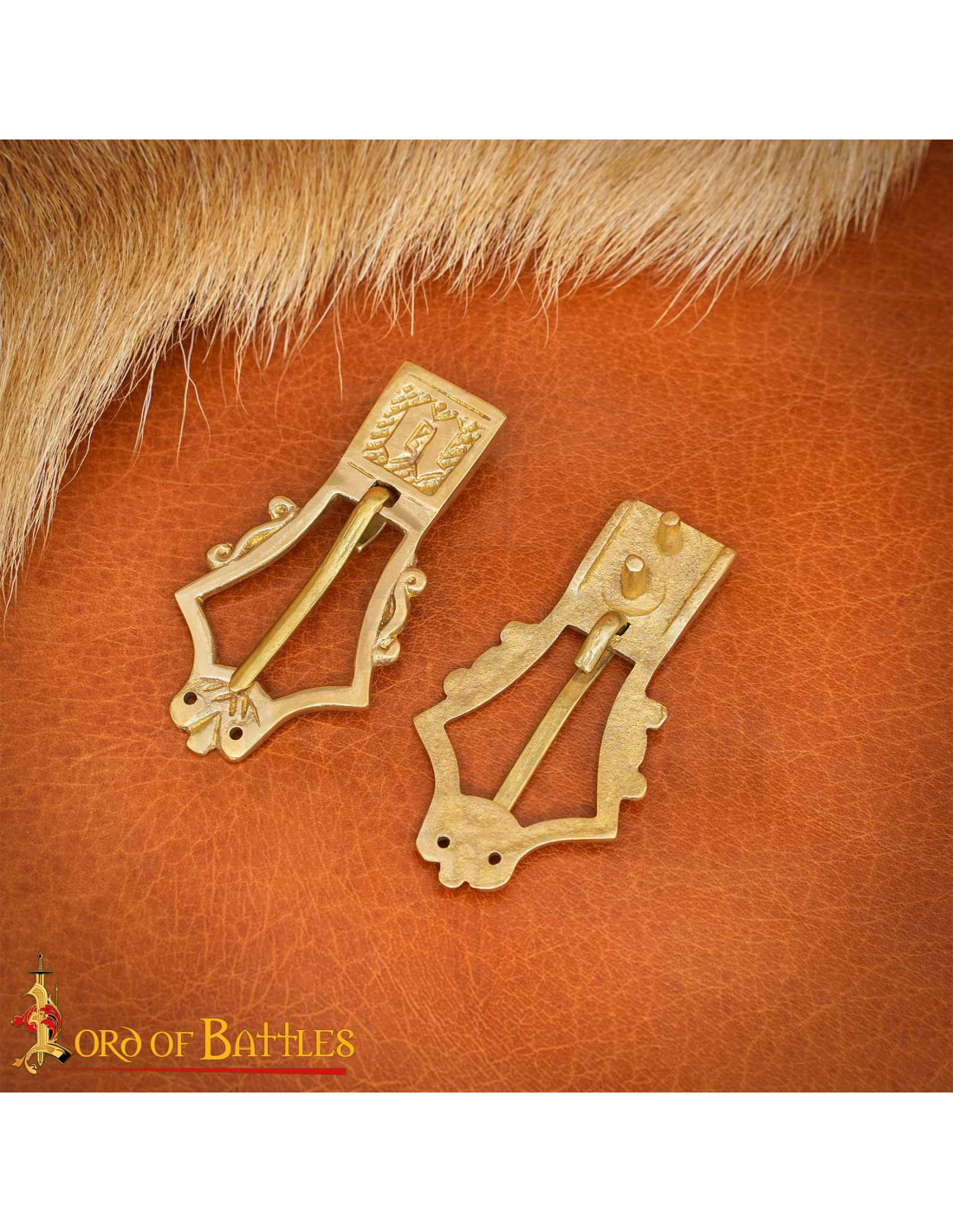 Set of 5 Authentic Brass Lyre Buckles in Medieval Style combines historical aesthetics, practicality, and versatility, offering the perfect finishing touch for a wardrobe with presence and personality.