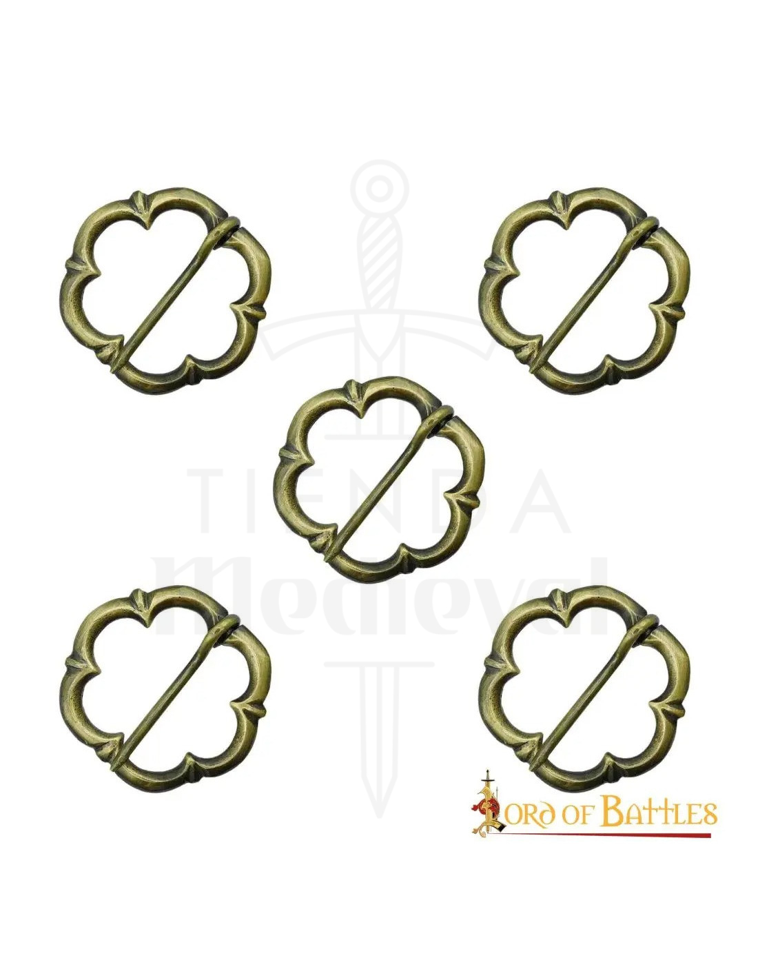This set of five brooches brings that impact: the weathered bronze tone and subtle relief evoke handcrafted materials, offering you an authentic look without complications. Each brooch easily fits into layers, capes, or cloaks, and its central bar ensures secure attachment while allowing you to move confidently during long events.