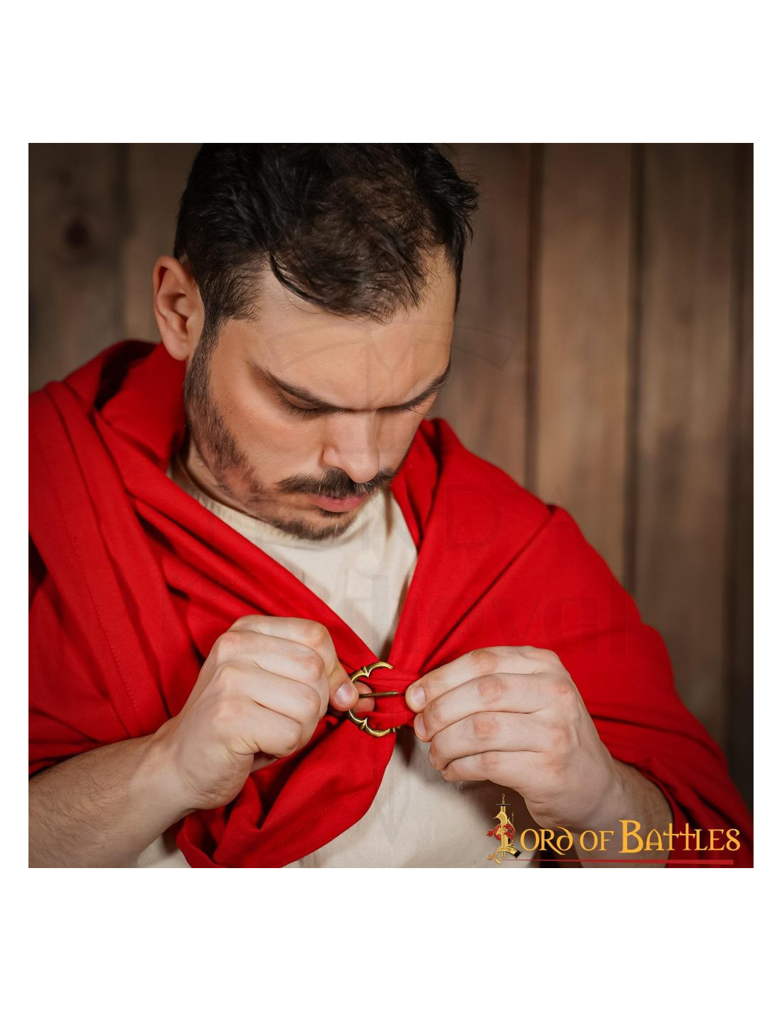 If you are looking for brooches for your recreations or to complete a costume with identity, you will find that their presence is perfect both in recreation days and in photo shoots or theatrical costumes. The circular design with four soft lobes recalls Gothic motifs, providing an elegant touch that enhances edges and folds without stealing the spotlight from the outfit.