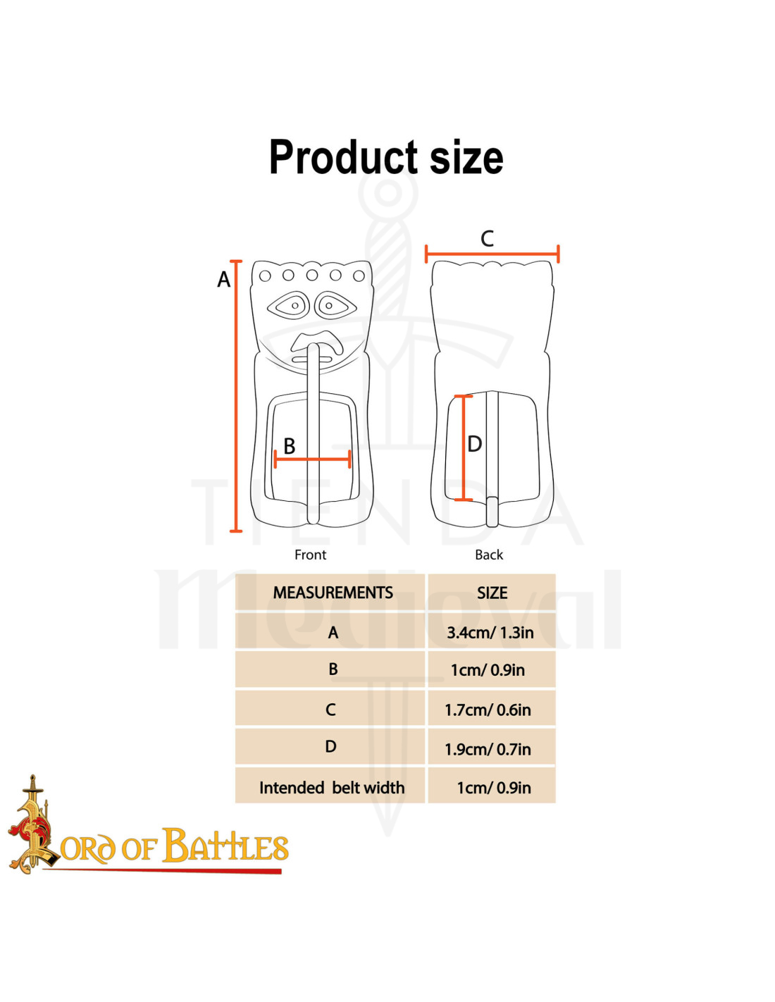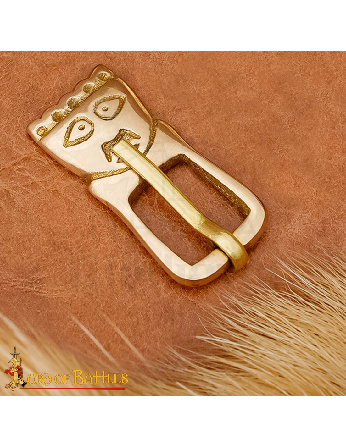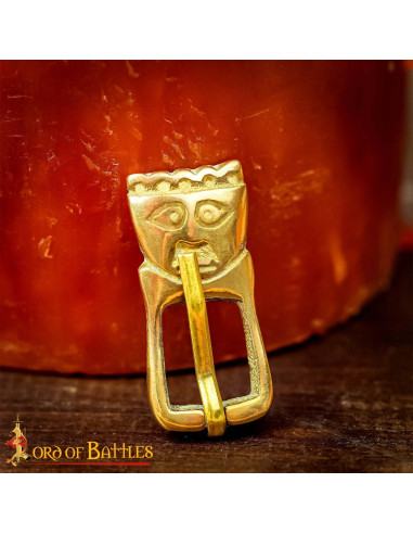 If you're interested in purchasing the 14th Century Brass Medieval Buckle, King Head, you will find a piece that balances decoration and purpose, perfect for completing an outfit with authenticity. Inspired by European archaeological finds from the 14th century, it evokes the aesthetics and symbolism of that time without losing practicality.
