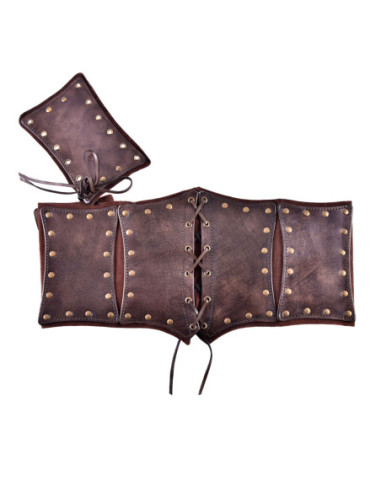 Wide medieval belt in leather model Olympus, brown color