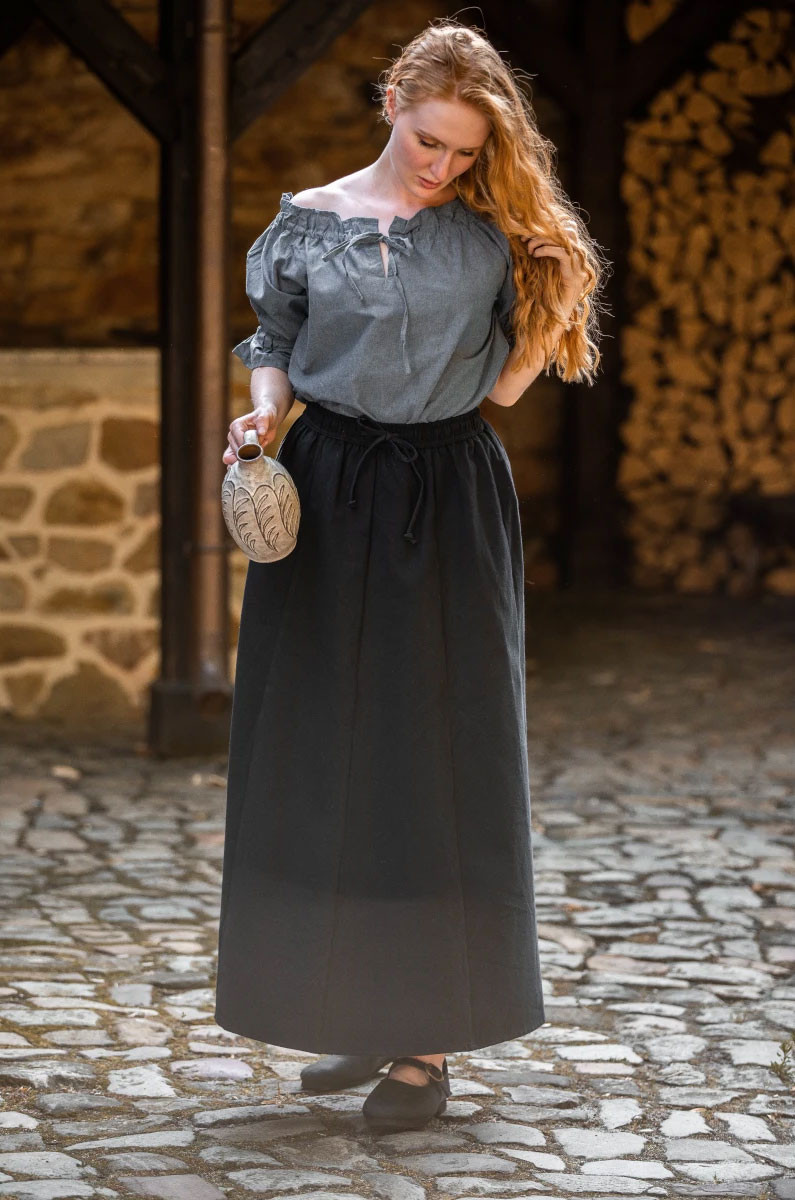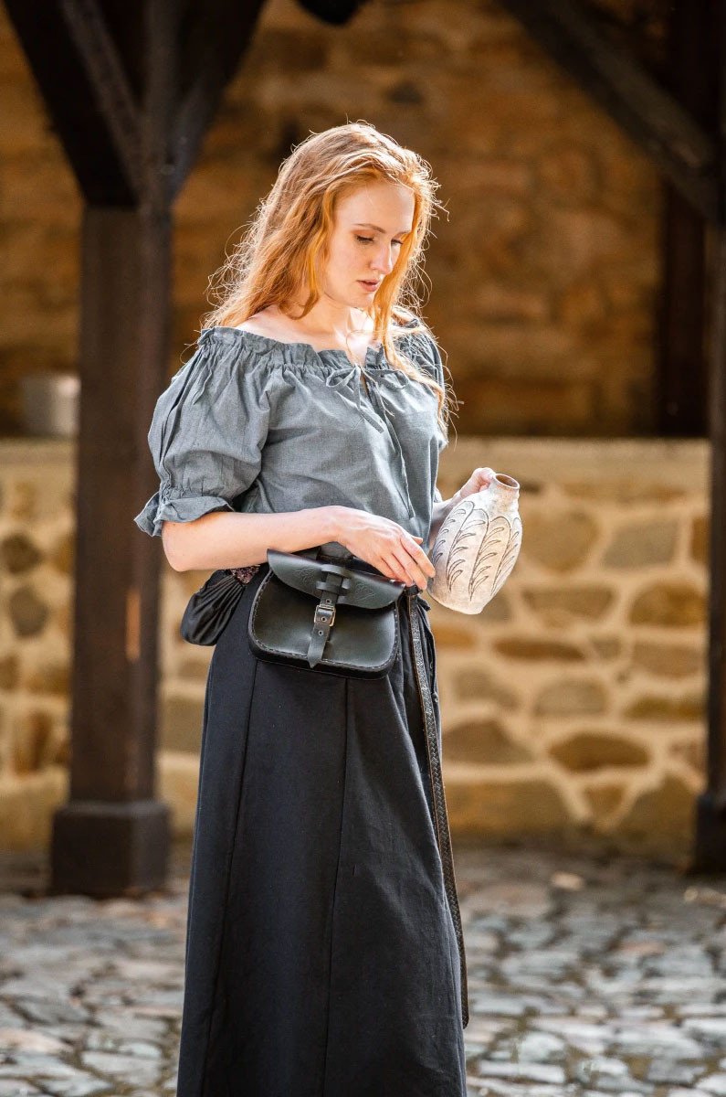 Discover the elegance and charm of the Verena medieval blouse! This short-sleeved blouse is available in three colours: blue, white and black, so you can choose the one that best suits your style. Made in Germany by the renowned Leonardo Carbone brand, this blouse stands out for its quality and authentically medieval design.