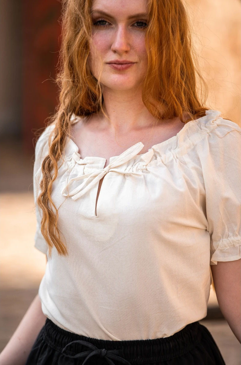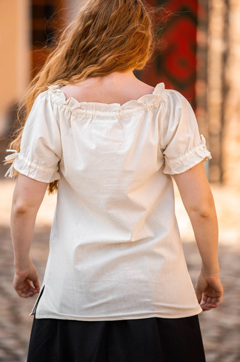 Discover the elegance and charm of the Otillia medieval blouse with ties in natural white!