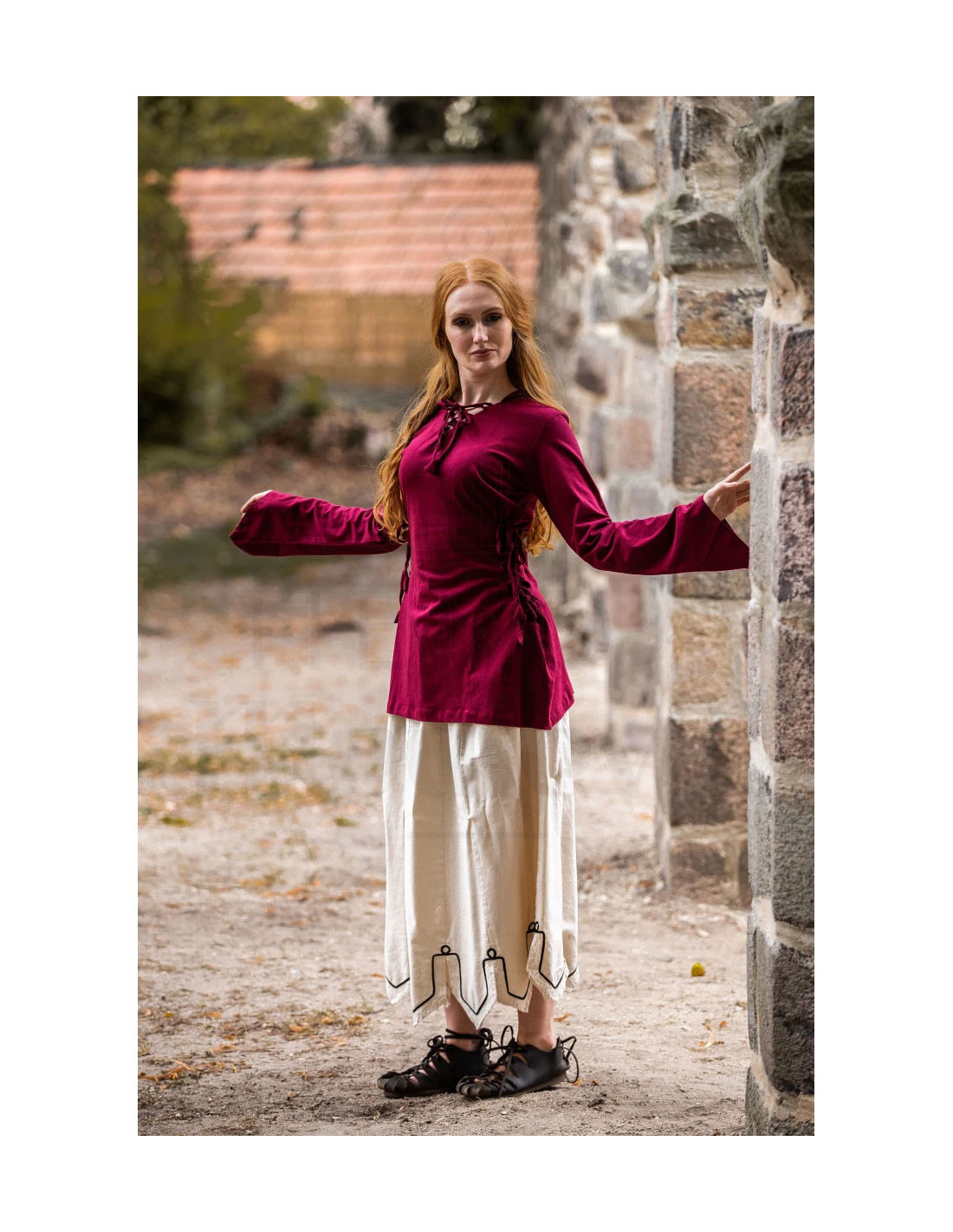 Make a fashion statement with our Lea Medieval Blouse in deep red. Made from soft and comfortable cotton, this blouse is the perfect combination of style and comfort. With its medieval design, the Lea Medieval Blouse is a unique garment that will take you on a journey through time.