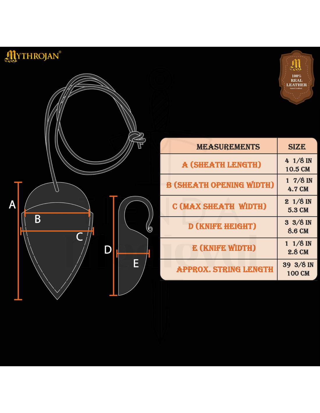 - Includes: leather sheath with emblem and cord for carrying.