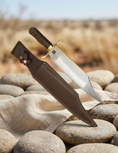 This Third Bowie knife is designed to accompany you in that insatiable quest for self-improvement, so that every encounter is an opportunity to demonstrate that your will and action are the true law of the game. In your hands, the satin steel and ergonomic handle not only cut but send a message of precision and confidence. The robust structure and well-thought-out details, such as the hole at the end of the handle or the reinforced sheath, ensure that your performance is always backed and ready for any challenge. Here, tools leave behind their simple functionality and become a symbol of your essence: bold, determined, ready to conquer.