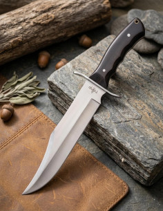 True power is not just in presence, but in asserting strength, skill, and control in every movement. When you’re in nature, facing situations that demand precision and firmness, the difference between a good moment and a successful memory lies in having the right tool in your hands. Here, the Third Bowie hunting knife, with its 440 steel blade and ebony wood handle, becomes your natural extension—an accessory that ignites your confidence and reinforces your leader character. It’s more than just a tool: it’s the vehicle that connects you with the untamed part of you, that part that needs to dominate the environment with elegance and efficiency. Imagine raising the weapon, feeling its perfect weight, that 24 cm blade ready to administer justice in every task, every cut, and every challenge. The solidity of the steel and the warm touch of the wood will reaffirm your authoritative stance, while the nylon and leather sheath accompanies that feeling of power ready to act, on any terrain and in any circumstance.