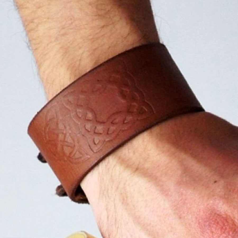 Bracelet-wristband with Celtic knots in leather
