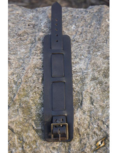 Discover the Epic Armoury black leather single strap bracelet. This simple yet solid bracelet is made from a 20cm long strip of top grain leather. With its elegant and minimalist design, it is the perfect complement to your rogue or soldier costume.