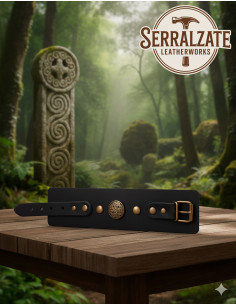 Discover style and history on your wrist with the Celtic knot bracelet from Serralzate LeatherWorks. This piece is handcrafted in Spain with high-quality leather, ensuring durability and a flawless finish. Its design is inspired by the elegant and intricate Celtic knots, symbols of continuity and connection, adding a distinctive touch to this accessory. Featuring bronze-toned details such as an adjustable buckle and decorative buttons, it combines functionality and aesthetics. Includes 1 unit.