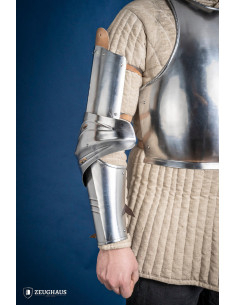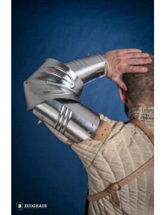 Embark on an adventure through time with the 15th century German arms in polished steel, a meticulously crafted work that combines protection and mobility in an exceptional way. Made from durable steel, these armor arms offer you impenetrable defense for your limbs, without compromising your ability to move.