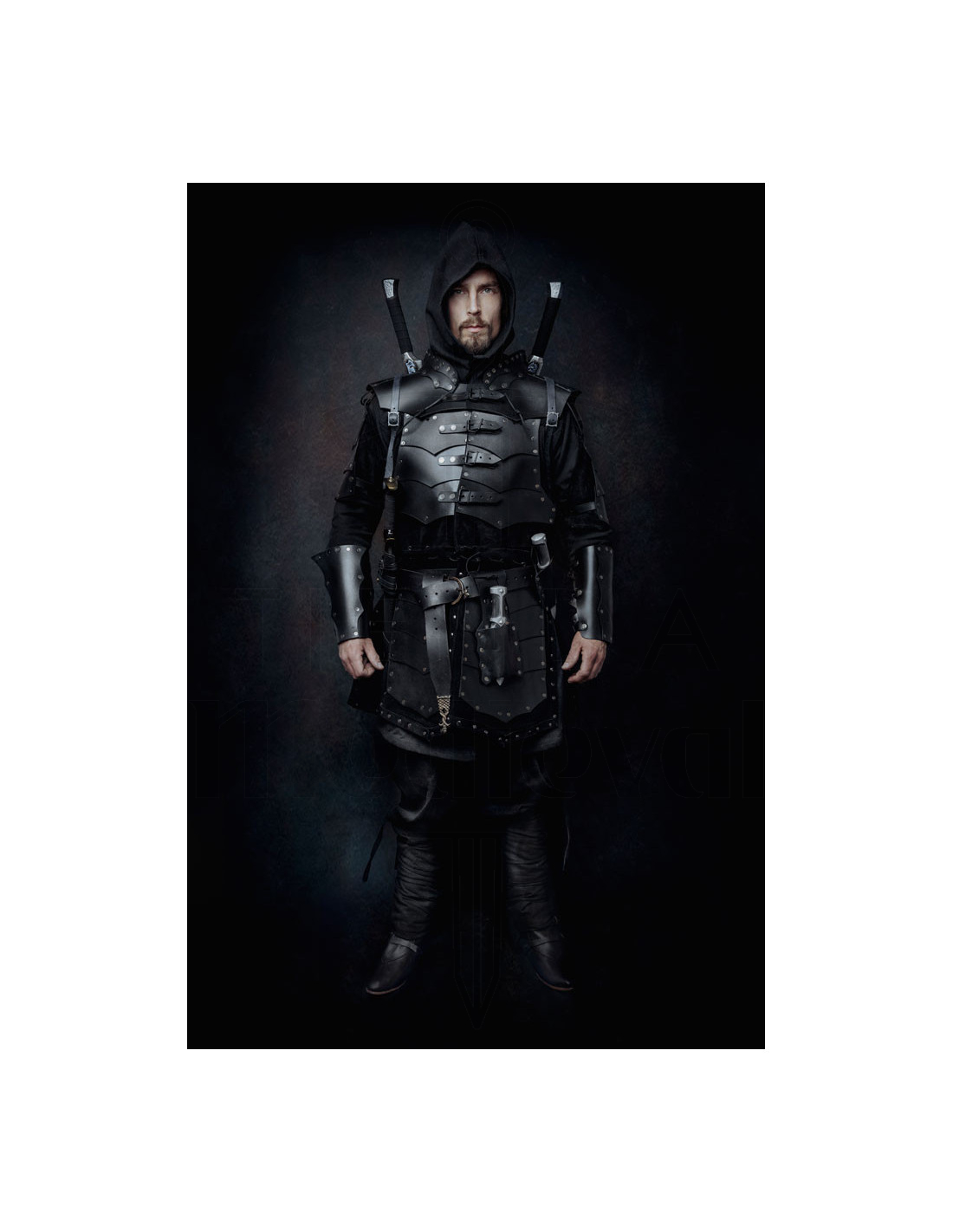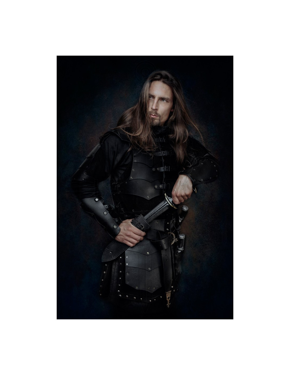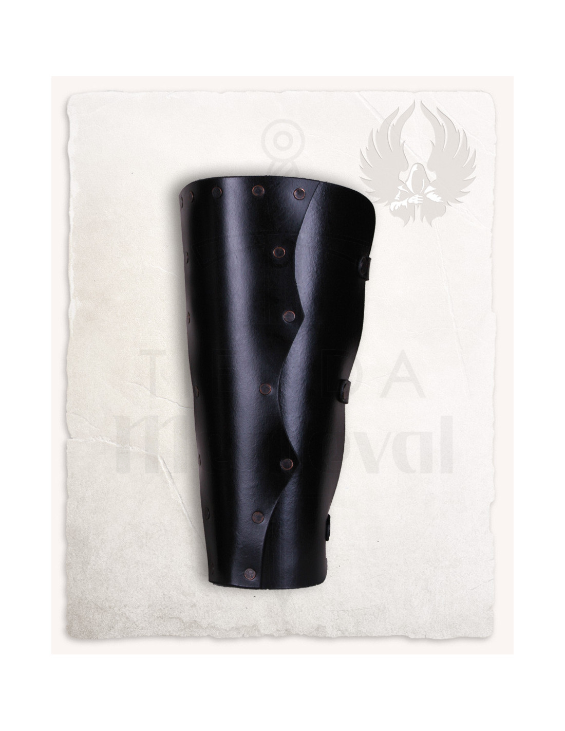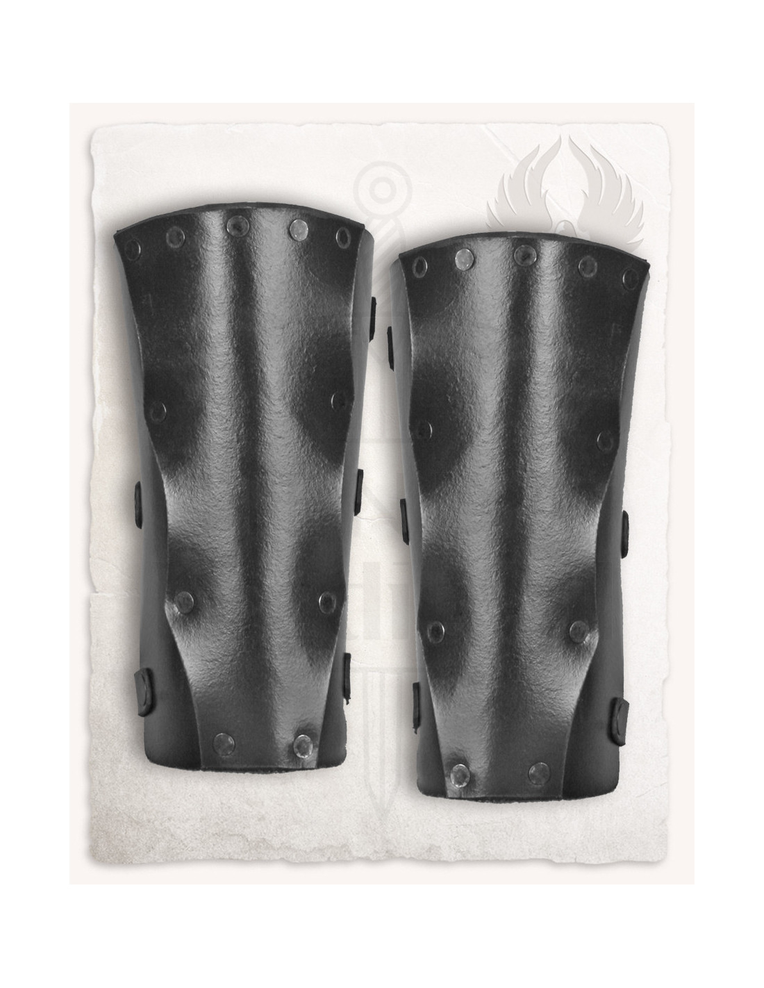 Made from high-quality split leather, they offer a soft yet durable texture that combines longevity and comfort with each use. Their curved design follows the shape of the arm, facilitating mobility and preventing discomfort during long days or recreational combat. Additionally, being sold in pairs, you can create a harmonious and complete set. The classic and robust aesthetic of these bracelets makes them ideal for themed events, cosplay, or to enhance your medieval look, adding a touch of authority and character.