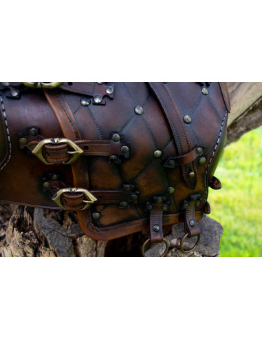 The Lorica Squamata comes with leather straps on the side and on the neck.