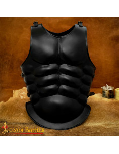 The blackened steel Roman cuirass with straps is the essence of authenticity and reliable protection!