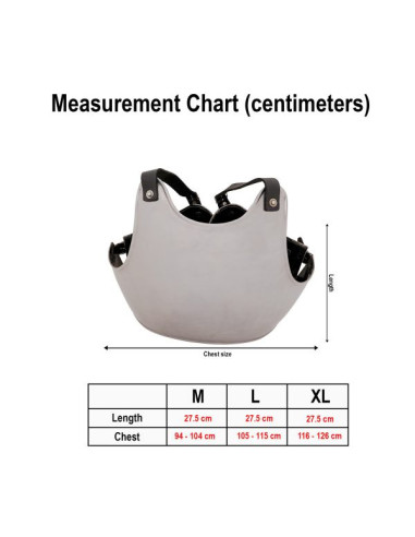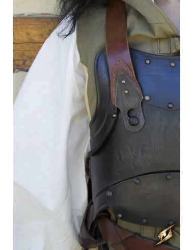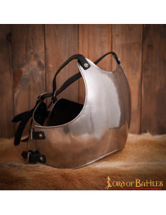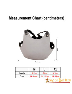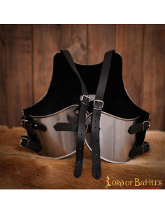 Handcrafted from durable 18-gauge military steel, this breastplate covers most of the torso while remaining lightweight and comfortable. Available in three sizes - medium (for breasts 94-104 cm), large (for breasts 105-115 cm) and extra-large (for breasts 116-126 cm) - this breastplate is highly adjustable thanks to its multiple leather straps authentic.