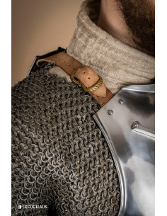 Made from 1.6mm thick steel, this breastplate offers exceptional resistance, although thickness may vary slightly due to the artisanal methods used in its manufacture. The steel is untreated, but if you wish, you can protect it with mineral or synthetic oil to maintain its shine and quality over time.