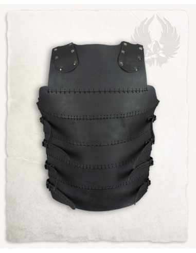 Imagine gliding into action with armor that reflects the essence of the great warriors of antiquity. Made from top-quality leather, every detail has been meticulously crafted by skilled artisans, creating a weathered effect that tells stories of epic battles. The chest piece, which fits perfectly to the torso, not only provides protection but also incorporates a golden medallion that radiates an air of nobility and bravery.
