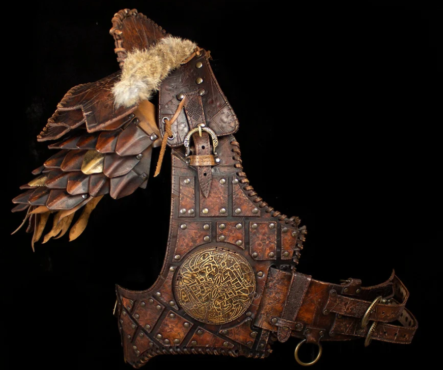 The shoulder pad, robust and elegant, complements your figure with its decorated layers and the famous sword breaker, making you look as if you've come from the icy north. But that's not all; the scale sleeve adds stylish details and protection, recalling the brave tales of Viking and Celtic warriors.