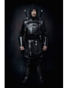 Medieval plate armor with riveted laminar steel plates stainless steel