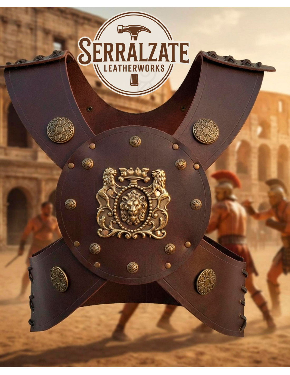 The metallic details in aged brass or bronze and the central plate elevate the whole ensemble, adding a focal point that enhances any classic or fantastical inspired outfit. If you're looking to buy an Adjustable Leather Gladiator Chest Armor for LARP and Cosplay that conveys authority, this piece is the choice that provides presence without sacrificing comfort.