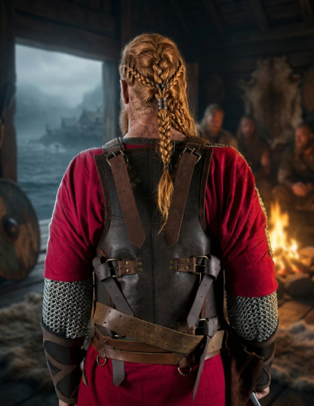 Have you ever dreamed of feeling like a true Viking warrior, ready to conquer and defend your legacy? Imagine gear that doesn’t just protect you in battle, but also speaks of your strength and character. The Viking Leather Armor is that tool that makes this vision real, blending functionality and power into a single piece. Crafted with high-quality leather and a design that fits you with perfect precision, you'll be prepared for any challenge, whether in historical reenactments or cosplay adventures. Every buckle at the back adjusts the armor to your body, ensuring comfort without sacrificing protection. It’s more than clothing: it’s a symbol of resilience and fighting spirit.