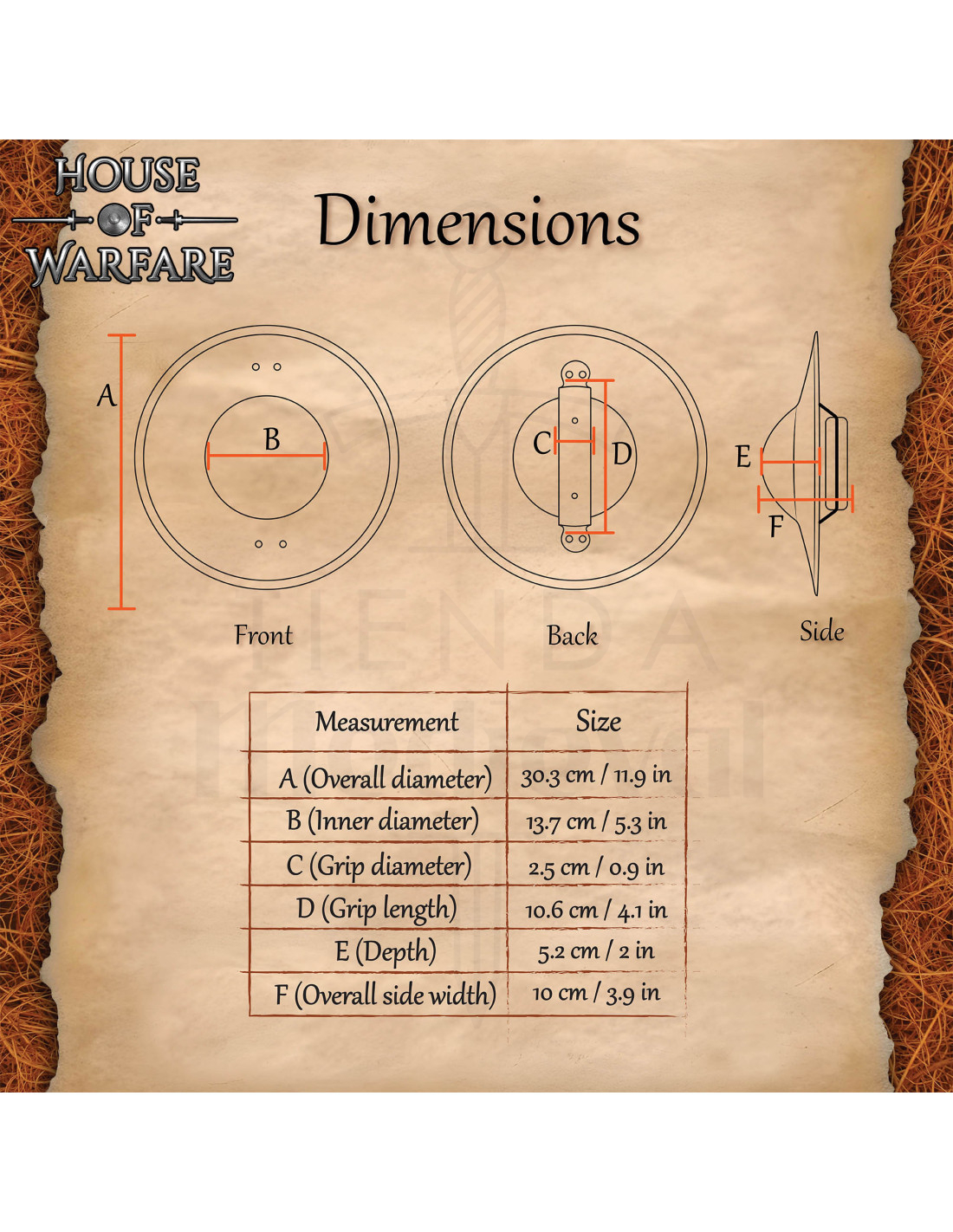 Perfect for those seeking functional authenticity, whether for historical training, LARP, HEMA, or for completing a characterful collection. If you’re looking for a piece that combines veteran aesthetics with practical performance, consider purchasing the Functional Medieval Buckler with Riveted Steel Handle as your next addition.