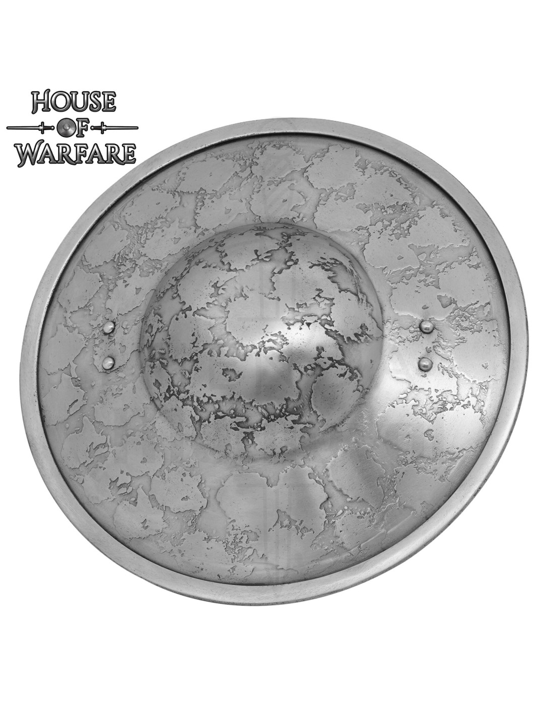 This Functional Medieval Buckler with Riveted Steel Handle offers an authentic presence without sacrificing maneuverability, thanks to its forged construction that provides strength and a solid feel when blocking or deflecting attacks. Its central dome not only delivers a historical appearance but also concentrates impacts and allows for distance control with precise movements.