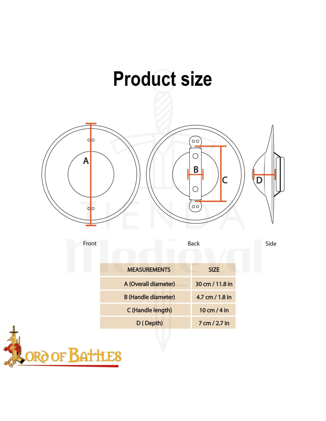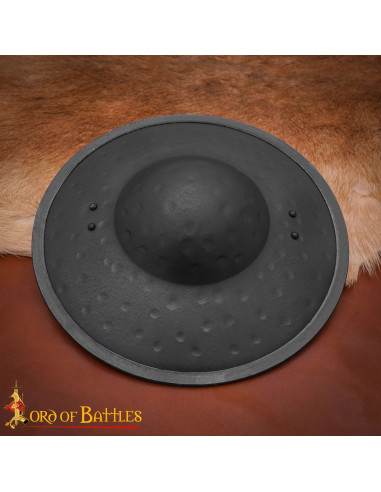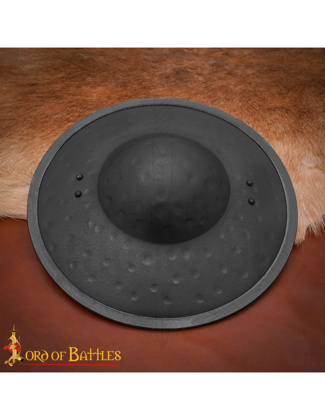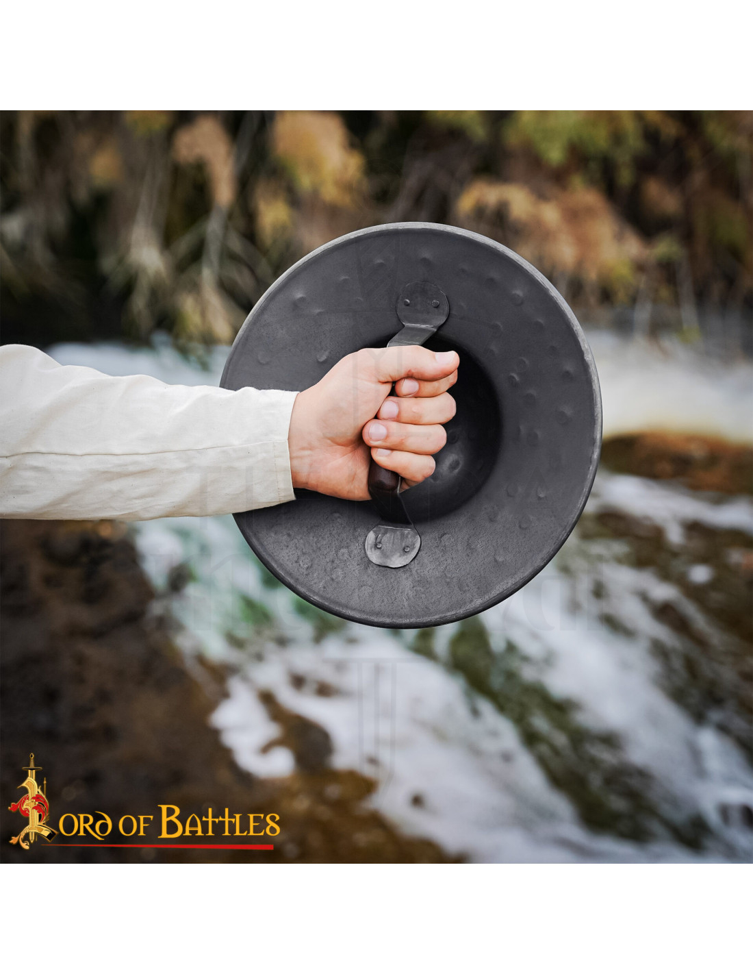 Ideal for theater, historical reenactment, HEMA training, LARP events, or as a decorative piece in exhibitions and private collections. If you are searching for purchase-oriented terms, terms like buy Medieval Buckler in Blackened Steel with Wooden Handle or sale of Medieval Buckler in Blackened Steel with Wooden Handle place this model among the available options for acquisition.