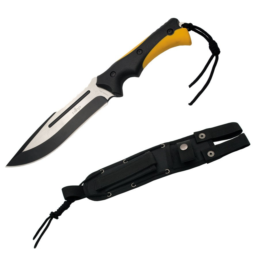 Are you ready to take your adventures to the next level? Then the Third tactical knife is the perfect companion for you. With an 18.5 cm long stainless steel blade, you will be able to face any challenge with confidence and security. In addition, its black-yellow rubber grip with rope ring will allow you to have a firm and comfortable grip at all times.