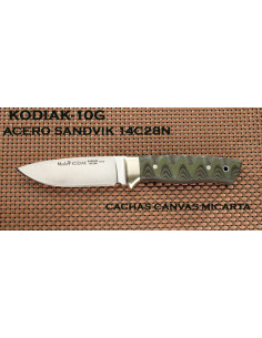 Are you looking for a high-quality and resistant military tactical knife? The Kodiak military tactical line knife is just what you need! With a full blade made of Swedish Sandvik 14C28N steel, one of the best steels in the world, this tactical knife is durable and resistant to any type of wear. In addition, the green micarta handle and 3D machined canvas scales give it an elegant look and are comfortable to hold.