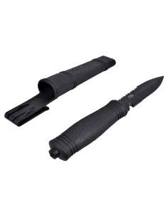 This single-edged adventure knife from SCK is the perfect companion for your outdoor expeditions. With a black stainless steel blade and a rubber coated polymer handle, this knife is easy to handle and very durable. In addition, its rigid polymer case with belt clip allows a safe and comfortable transport. With a total length of 235mm (240mm with sheath) and a weight of only 110g (145g with sheath), this knife is ideal for any adventure in the wilderness.