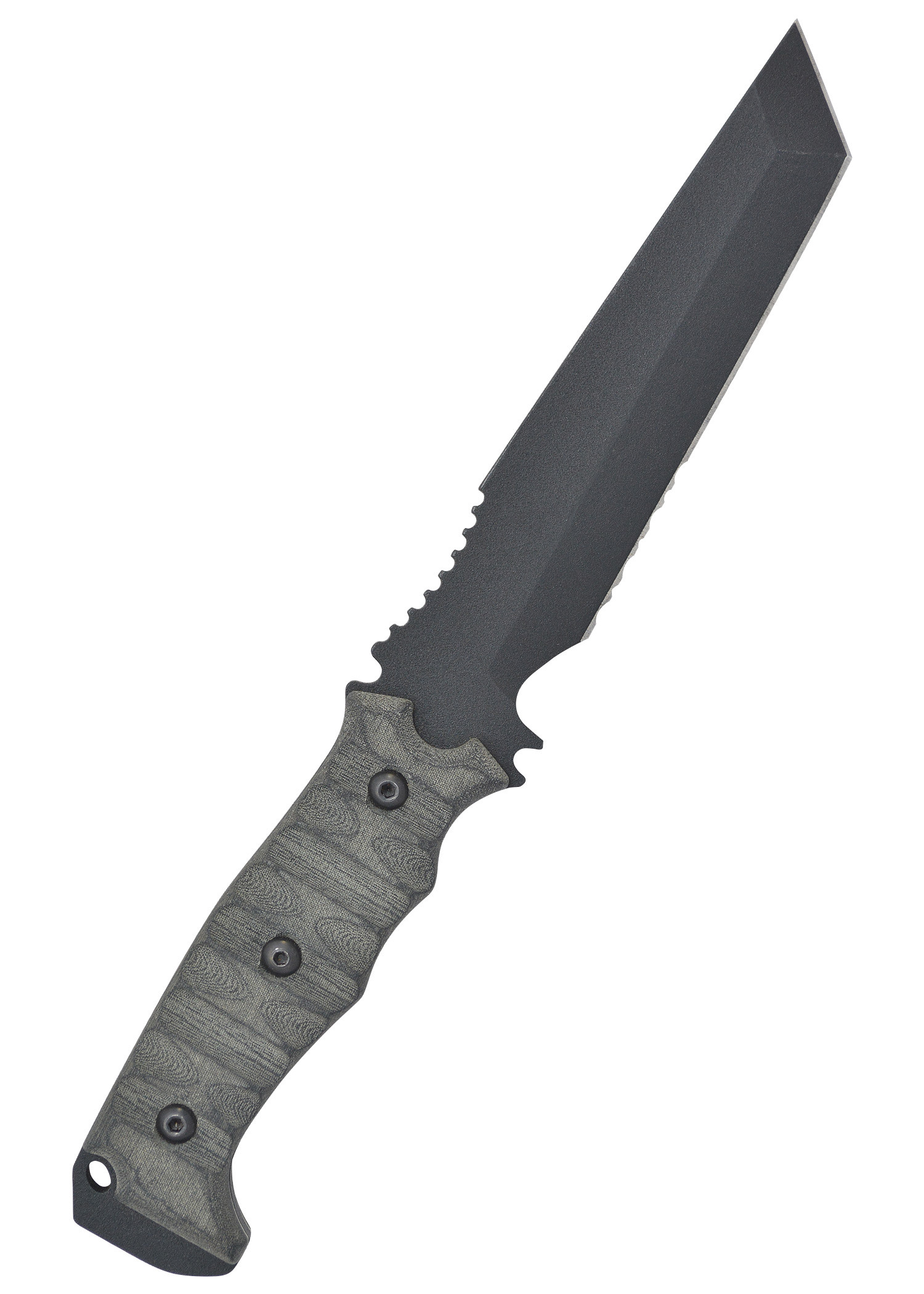 - Versatile and durable design: The Tanto blade, with a thickness of approximately 5 mm and a full tang, ensures optimal performance in various situations. Additionally, the lanyard hole at the end of the handle allows for safe and versatile handling.