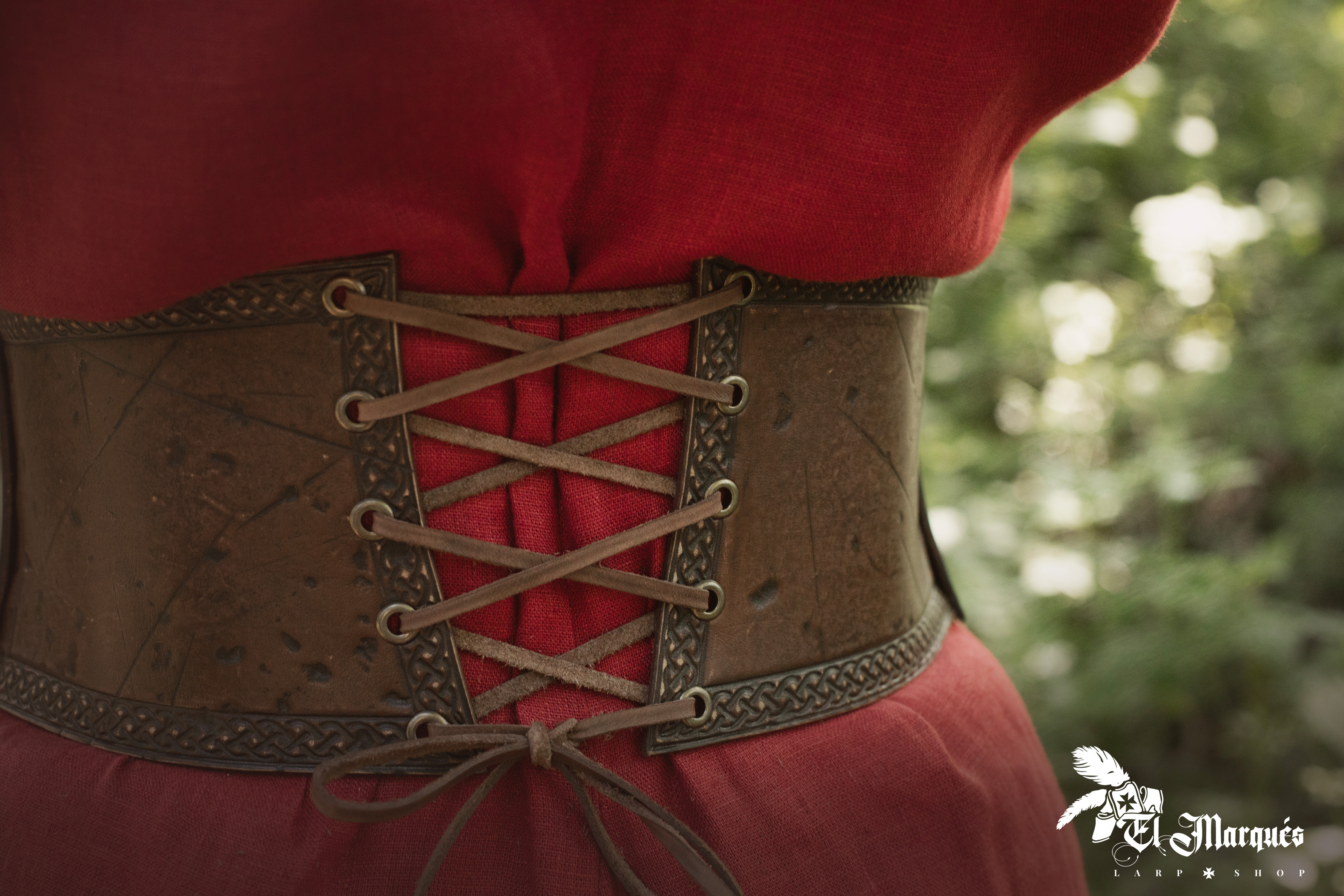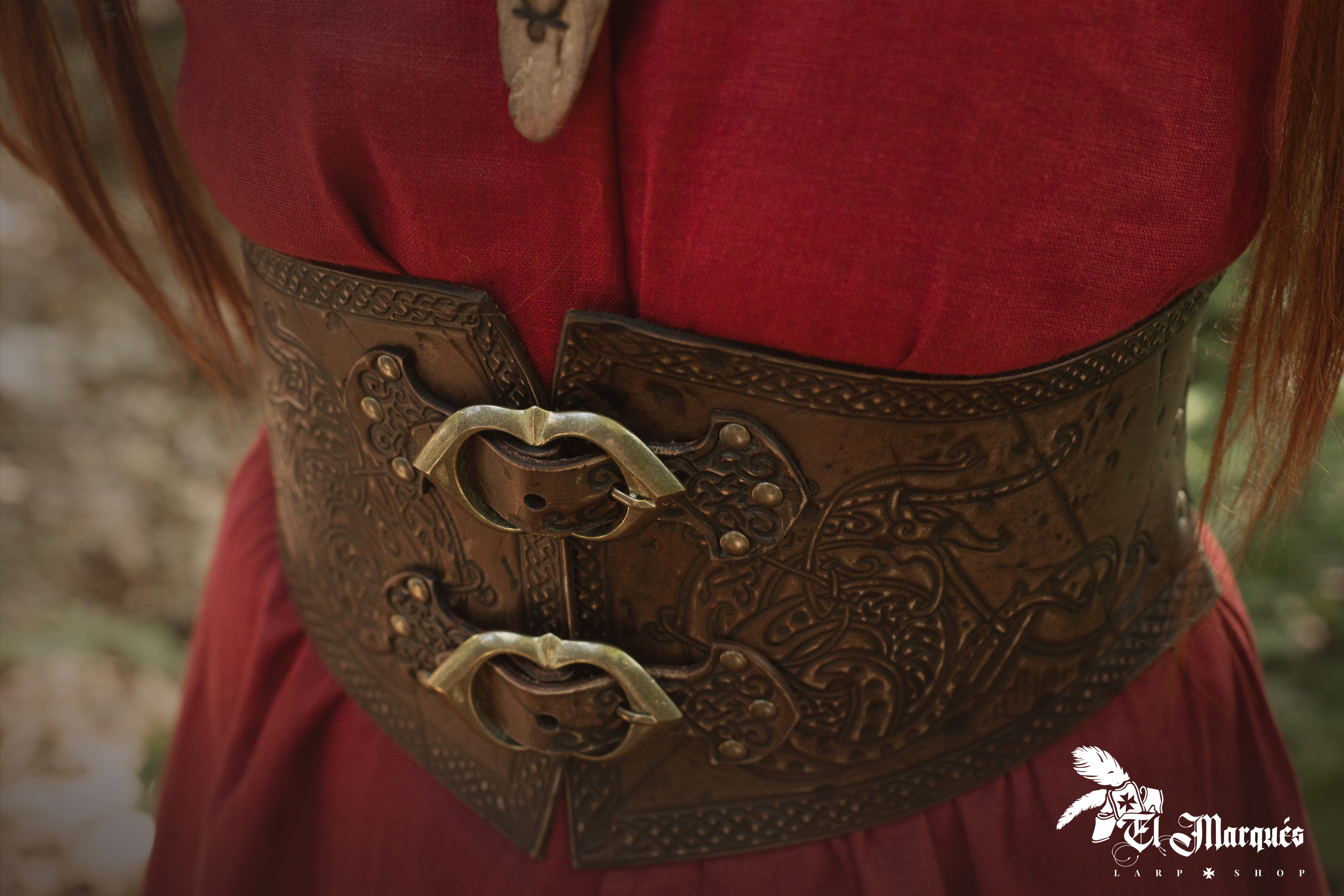 Discover the Viking Valkyrie Corset Belt - Brown from El Marqués de LARP, an accessory designed for those seeking to channel the strength and boldness of a true shield maiden. This belt is not just an accessory, but a gateway to a world full of epic stories and Nordic legends. With its wide design and intricate Viking-inspired engraving, it will become the standout element of your outfit, perfect for LARP events, historical reenactments, or to wear stylishly on any special occasion.