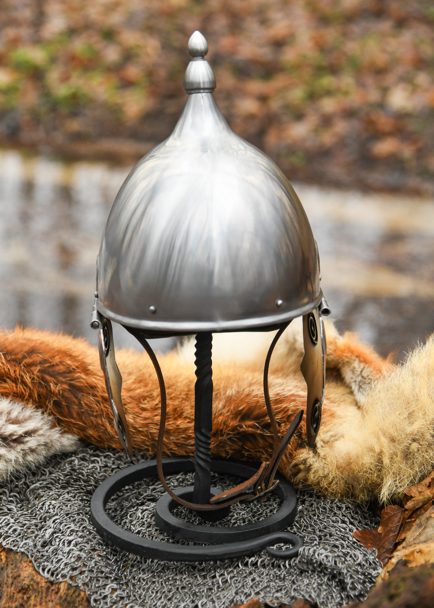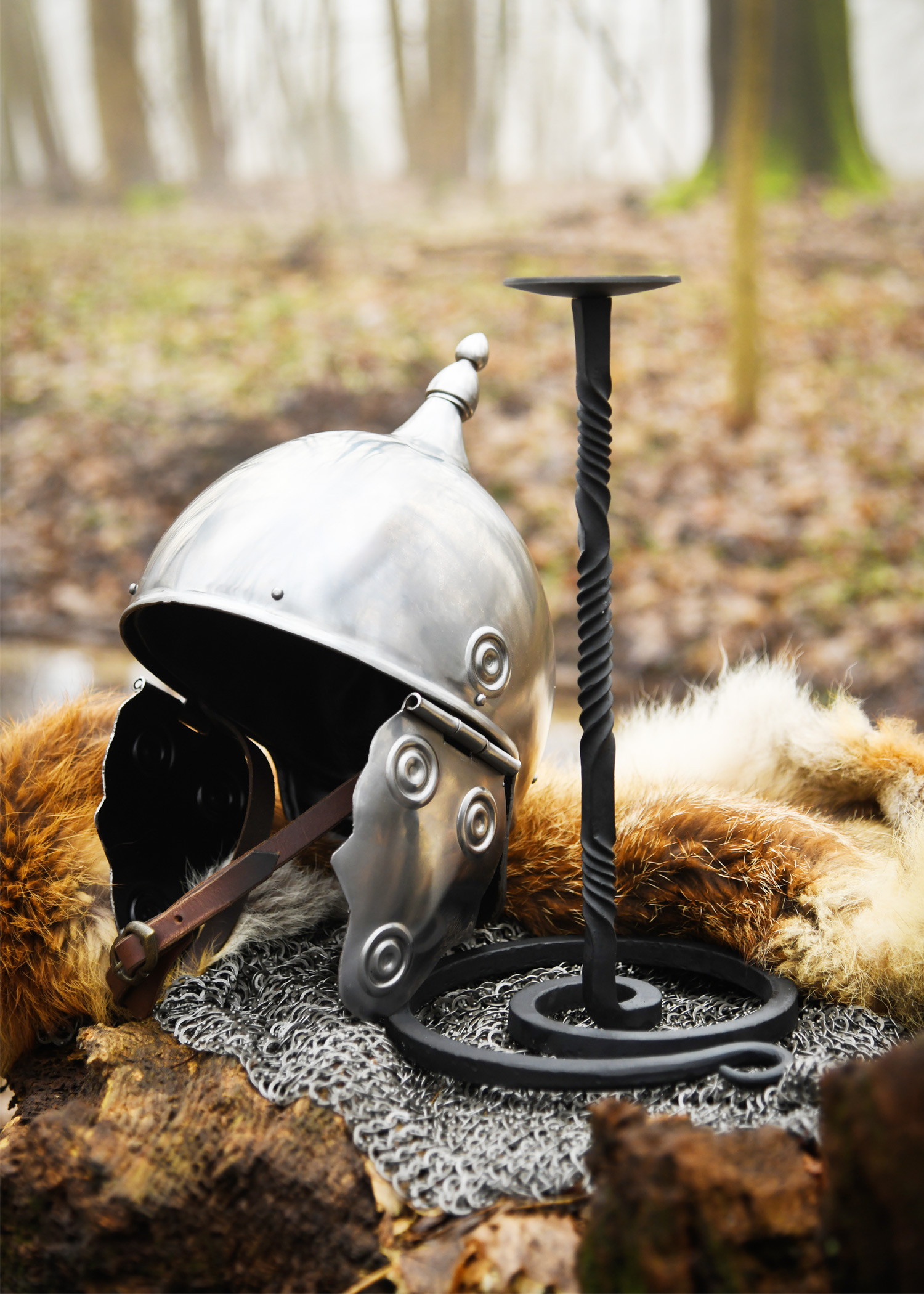 Versatile and functional, it can be used as an exceptional stand for Viking or medieval helmets, providing the opportunity to showcase your collection in a unique way. Your guests will not be able to help but admire it! Moreover, its historic design makes it the perfect complement for reenactment events or simply to give your home a nostalgic touch.
