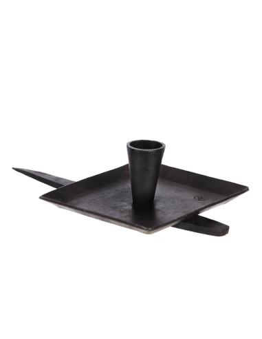 Its dark finish and the elegant spiral that holds the candle not only add a rustic visual appeal but also ensure durability and a robust style ideal for both indoor and outdoor settings, from gardens to vintage or medieval-themed interiors. Every detail reflects the dedication of its handcrafted forging, making this candelabrum more than just an accessory: it is a piece with character that infuses your decor with soul and tradition.