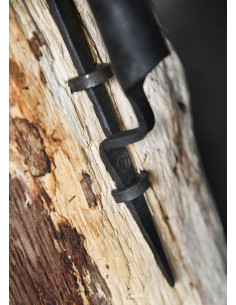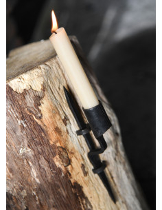 With a design inspired by medieval blacksmithing and carefully made from a single piece of iron, this holder stands out not only for its artisanal beauty but also for its versatility. You can securely fix it to the wall using the two metal brackets included, or adapt its pointed ends to nail directly into beams or walls, providing a natural and sturdy hold. This way, you can create a warm, inviting atmosphere with the glow of a lit candle, filling any corner with coziness and history.