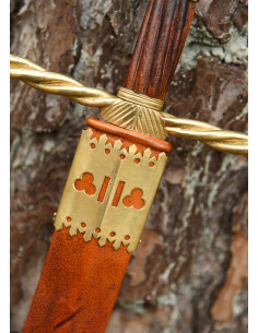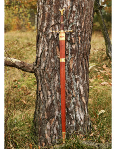 With its intricate design and exceptional quality, this sword is the perfect gift for enthusiasts of medieval history and collectors. Its hilt, with a finish reminiscent of ancient artisanal traditions, is adorned with bronze details that give it a unique character. Every element, from the guard to the pommel, has been carefully crafted to reflect the beauty of the original, which dates back to 1480 and has been part of renowned collections.