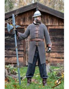 Made from high-quality durable steel, this chainmail coif offers full protection for the arms thanks to its long-sleeve design. Ideal for historical reenactment events, LARP combat, or as an impressive centerpiece in your medieval collection, the Captain's Chainmail Coif is designed for the warrior seeking authenticity and functionality.