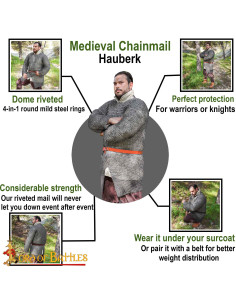 This hauberk model not only offers you protection, but also historical authenticity that will make you feel like a true warrior. Ideal for historical reenactments, LARP or simply to display in your collection, this chain mail is a must-have piece for any medieval history enthusiast.